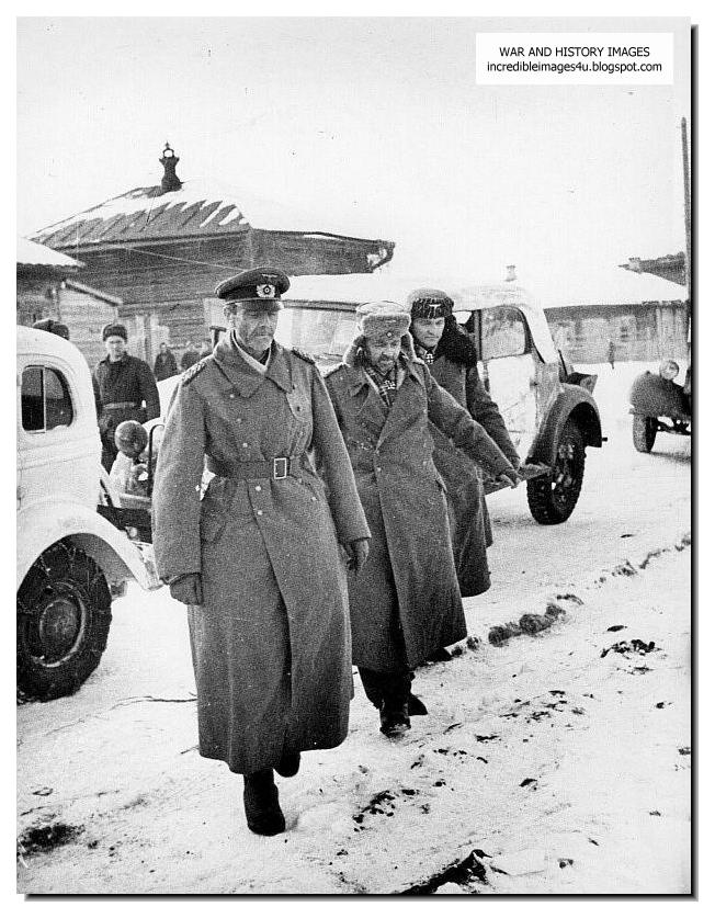 Field Marshal Friedrich Paulus (left), commander of the encircled German army in Stalingrad, his chief of staff Lieutenant-General Arthur Schmidt and his adjutant Wilhelm Adam at Stalingrad after the surrender.