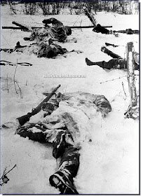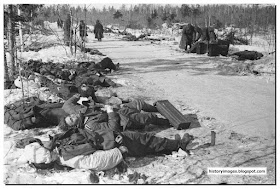 Speedy "Liquidation" of the German Forces Trapped at Korsun before relief Could arrive. General Werner Stemmermann and his Remaining units Determined on a Final breakout. At 0200 hours on January 7 February, as a blizzard raged, Stemmermann's Troops Their finished last supplies and Destroyed guns and lorries, Leaving scenes like this one. There was no place in the columns for the wounded, Who Were killed where They Lay. As the German column moved into open Country, Soviet tanks charged straight into it and Cossacks hunted down and massacred fleeing Germans