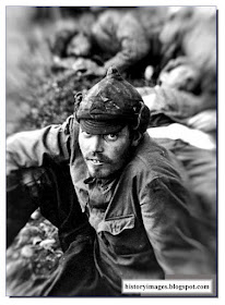 A Russian POW in 1941. His face says it all. Anguish at losing, anger and hatred for the invaders and the Russian stubbornness and suffer-but-never-give-up attitude. He is wearing a Budenovka helmet.
