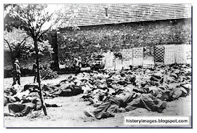 German soldiers near the corpses of executed people in the mining town of Lidice in Czechoslovakia (20 km west of Prague). The reason for the massacre was the killing of Reinhard Heydrich, protector of Bohemia and Moravia, by the Czech underground on May 27, 1942 in Prague. By decree of Gruppenfuehrer SS Carl Hermann Frank, the chief of the SS and police in Prague, the villagers were accused of harboring people who had done the assassination and on June 10 troops of the SS Division "Prinz Eugen" surrounded Lidice. All the male population over 16 years (172 people) were shot, all the buildings of the village was burned and razed to the ground. Women (172) were sent to Ravensbruck concentration camp, 60 of them died in the camp. Of the children those considered suitable for Germanization were sent to Germany. Others (82) were killed in the Chelmno death camp. Photo taken on 10/06/1942 Location: village of Lidice, Czechoslovakia
