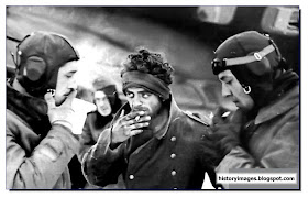 This image on the surface is hardly sinister. But delve deep and.... The location? Stalingrad airfield. December 1942. A soldier to be evacuated shares a smoke with Luftwaffe pilots.