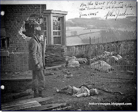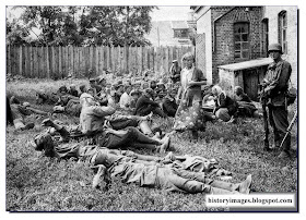 Russia. These dead German soldiers await burial. The local Russians are digging the graves.