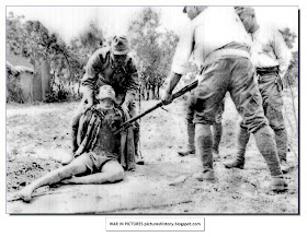 A Chinese POW about to be beheaded by a Japanese officer with a shin gunto during the Nanking Massacre.